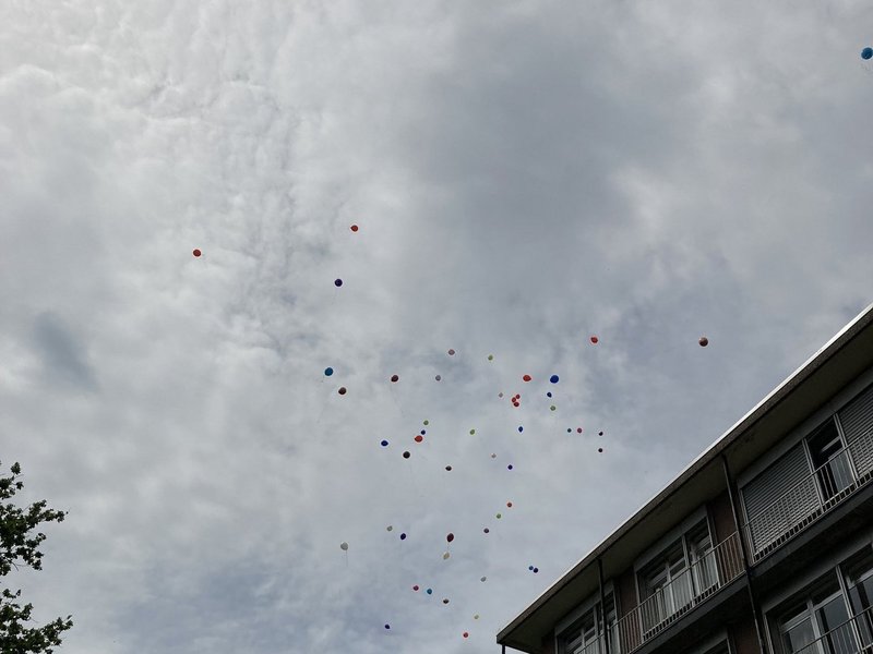 Zum Abschluss des Tages haben alle Bewohner/-innen und Mitarbeiter/-innen bunte Luftballons mit guten Wünschen für Frau Wissdorf und Frau Dr. Schultz steigen lassen.