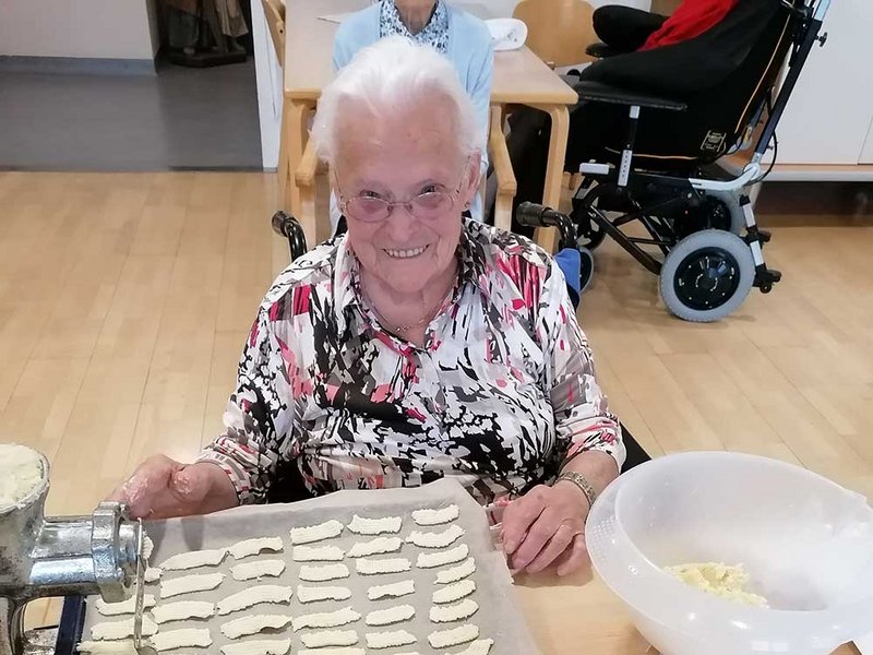 Und das zeigt sich überall im Haus durch liebevoll gestaltete Adventsgestecke mit duftenden frisch geschnittenen Tannenzweigen, die begleitet werden vom Duft frisch gebackener Plätzchen und Kuchen, der durch den Wohnbereich zieht und Bewohner/-innen wie Mitarbeiter/-innen an das herannahende Weihnachtsfest erinnert.