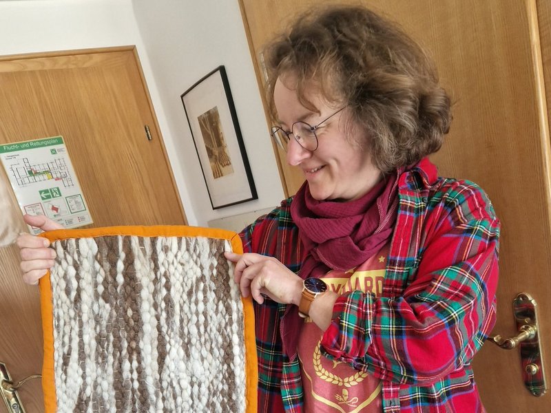 Und am Ende steht das Ergebnis: ein Sitzkissen aus Alpakawolle!