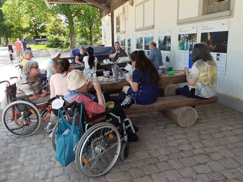 Wir hatten an zwei Tagen mit jeweils 10-12 Teilnehmer/-innen diesen Ausflug eingeplant. Möglich war dies, weil uns die Schüler/-innen, die jeweils einen Tag im Bereich der Sozialen Betreuung hospitieren, begleiteten.