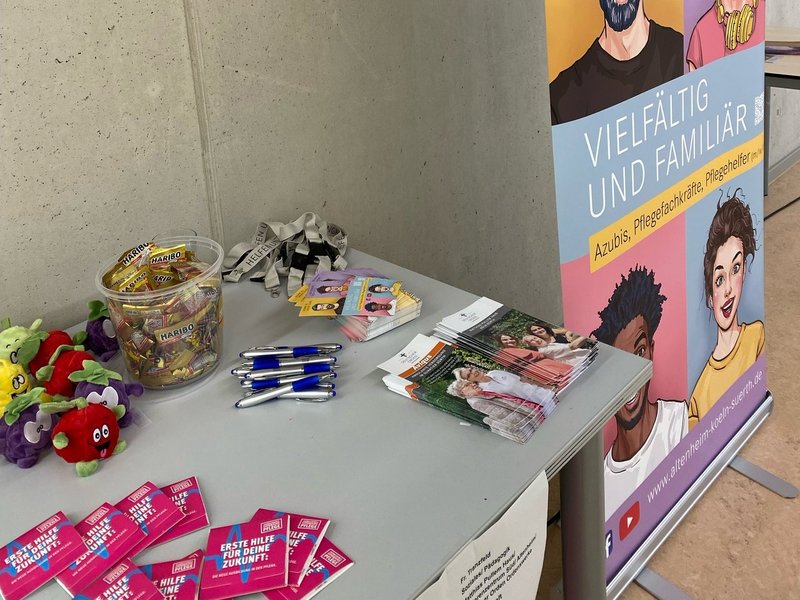 Frau Essaidi WBL & die Praxisanleitende Frau Klemm waren heute mit einem Messestand auf der Berufsorientierungsmesse der OSK (Offene Schule Köln) in Köln Sürth.