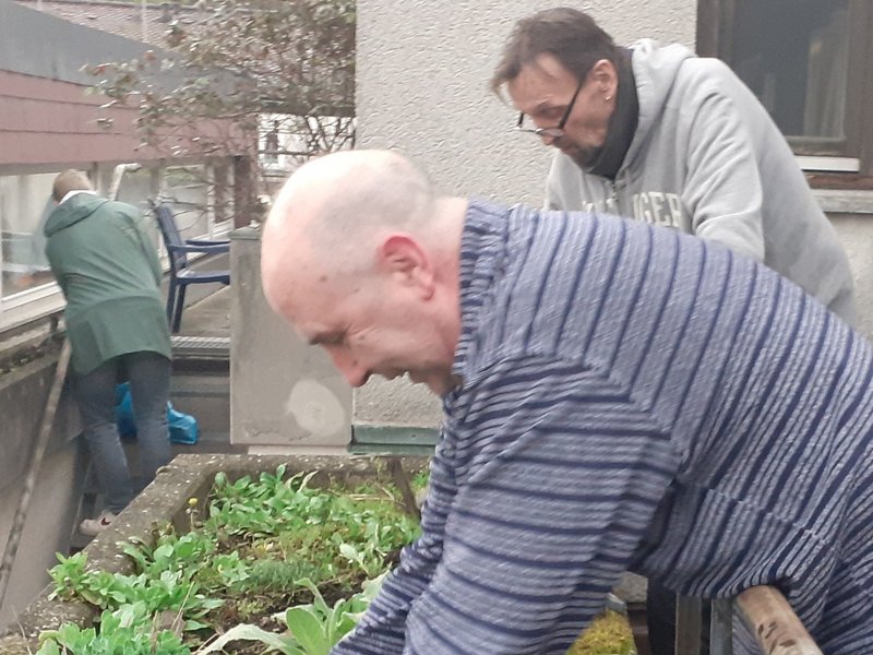 Insgesamt 2 Schubkarren mit Unkraut, Moos und anderen Pflanzenreste waren am Ende zusammengekommen, die von den Bewohnern und Bewohnerinnen und den Mitarbeitern der Sozialen Betreuung aus den Beeten gejätet wurden.