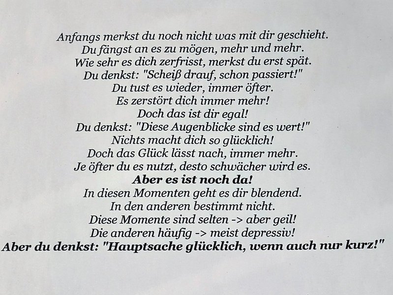 Beide Rehabilitanden hätten erst nach Entlassung aus der Fachklinik eine Freundschaft entwickelt. Den Kontakt zum konsumierenden Umfeld hätten sie gänzlich abgebrochen. Nun seien es Beziehungen, der Kontakt zu lieben Menschen – vor allem im beruflichen Umfeld – der ihnen Halt gebe. Und das eigene Kind gäbe Nadine H. nun einen Sinn.