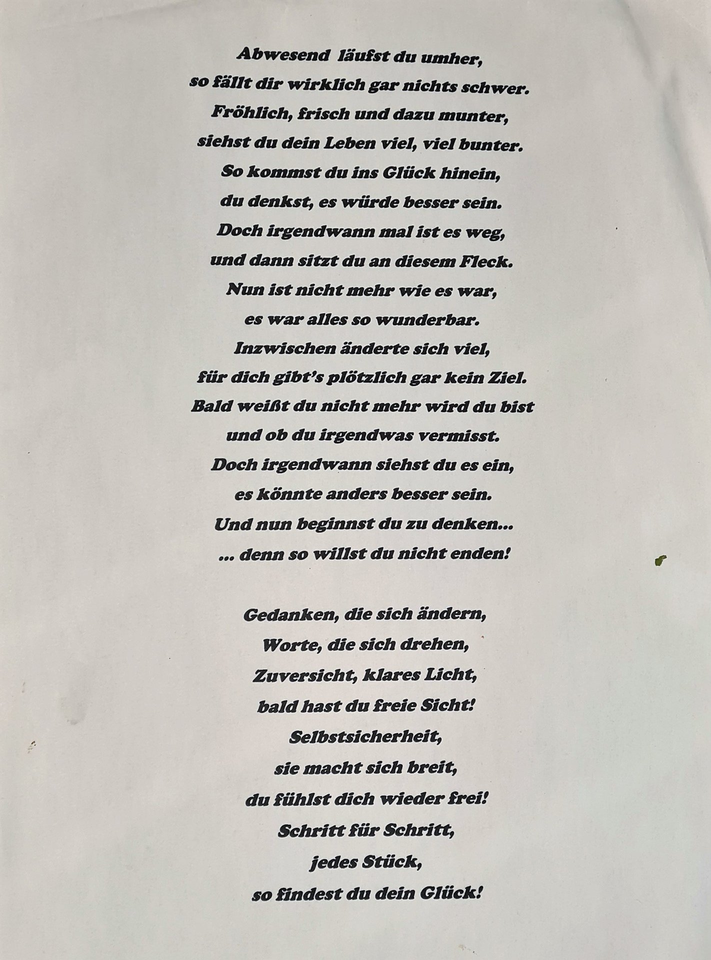 Nadine H. hat uns im Nachklang noch ein paar Gedichte / Geschichten zum Nachdenken geschickt. Diese veröffentlichen wir gerne auf unserer Homepage. Hier geht´s zum Download: