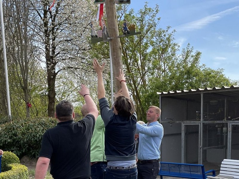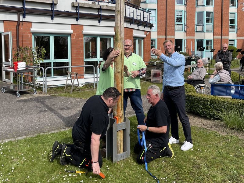 Mit vereinten Kräften wurde dieser aufgestellt und gesichert.