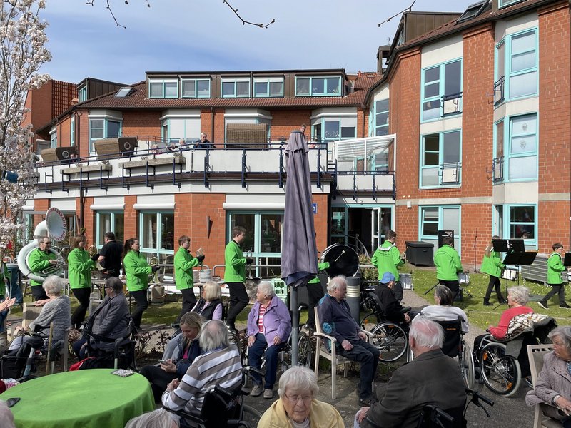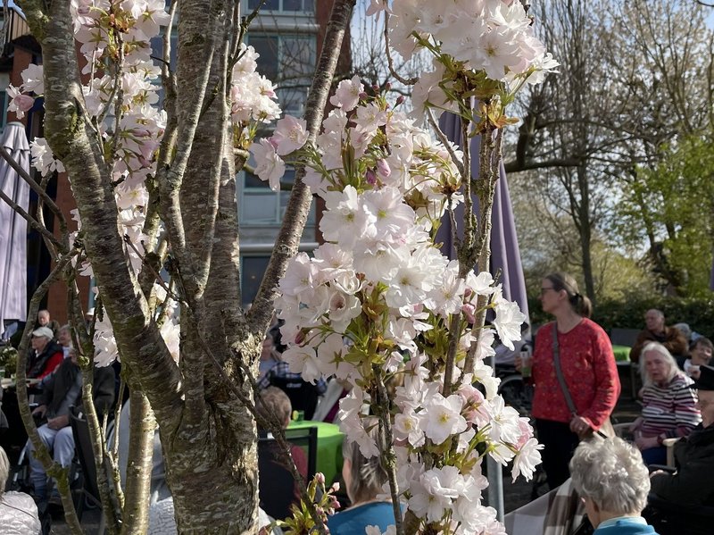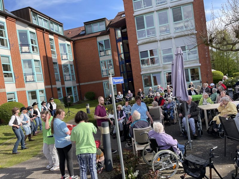 Mit strahlenden Sonnenschein wurden die Bewohner/-innen auf dem Platanenplatz begrüßt.