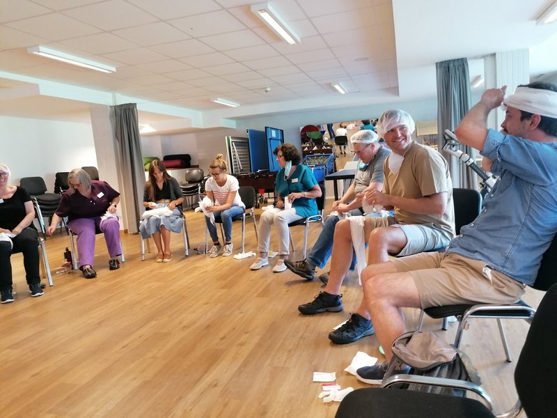 Ein Teil des Teams im Haus Schwarzenberg wurde in Erster Hilfe geschult. Die Gruppe hatte viel Spaß. Neben der Wissensvermittlung stand auch das Teambuilding wieder an oberster Stelle.