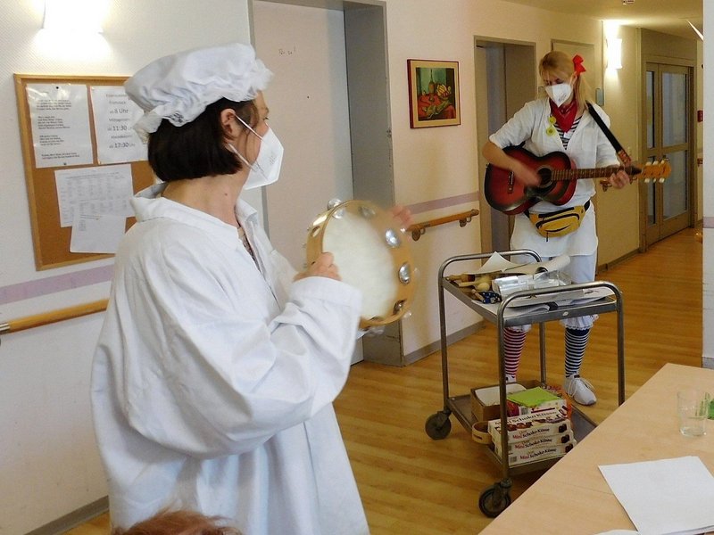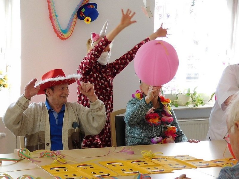 Dann ist Fastnachtsdienstag und man könnte meinen, die närrische Zeit im Katharinenstift neige sich ihrem Ende zu. Aber Nein, heute wird so richtig gefeiert. Alle die Lust haben, verkleiden sich noch einmal, oder schmücken sich mit bunten Blumenkränzen. Einfach mal anders aussehen, macht vielen unserer BewohnerInnen sichtlich Freude.