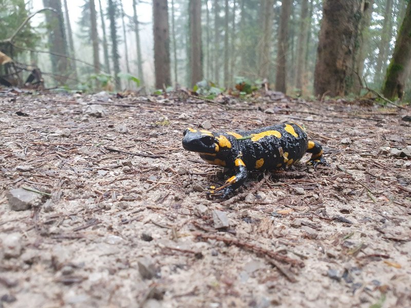 Mit unserer Bewohnerin, Frau P. hat sie auf einem Spaziergang einen Feuersalamander im Wald gefunden und auch gleich gemeldet.