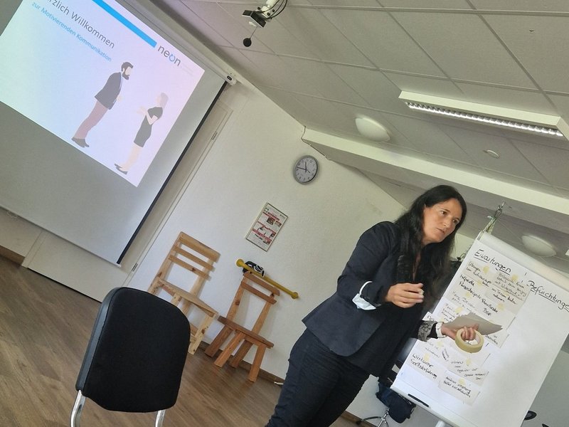 Ende September startete das Fachteam von Haus Schwarzenberg mit dem 1. Teil einer dreitägigen Fortbildung in motivierender Gesprächsführung (MI). Die von Miller & Rollnick entwickelte Grundhaltung und Gesprächsführungstechnik ist Standard innerhalb der Suchthilfe, Suchtarbeit und -therapie. Es geht bei dieser Haltung und Technik darum, mit den Widerständen und Ambivalenzen der suchtkranken Menschen zu arbeiten, im Gespräch geschmeidig zu bleiben, dem Gegenüber aktiv zuzuhören und evtl. Widersprüche in den eigenen Werten, Gedanken, Haltungen, Verhaltensweisen - gemeinsam mit den Menschen mit Verhaltensstörungen / -problemen - sachte zu reflektieren. Mit Claudia Schmal, vom Träger Neon Prävention und Suchthilfe in Rosenheim, konnten wir eine kompetente und engagierte Referentin gewinnen. Besten Dank an Frau Schmal für dieses Angebot und ein grosses Lob für die Mitarbeitenden - für so viel Offenheit und Interesse an Weiterbildung und -qualifizierung. Unsere Bewohner/-innen werden von unseren erweiterten Kompetenzen sicher profitieren.
