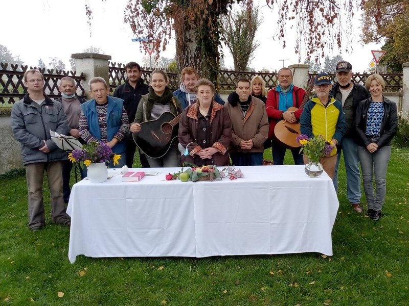 Janina Dorrissen, Mitarbeiterin der DO-Seelsorge, die Bewohnerinnen, Bewohner und das Team aus unserem Haus feierten gemeinsam ein Erntedankfest in unserem wunderschönen Garten.