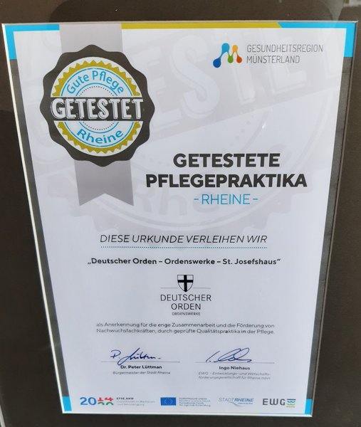Wir haben das Label "Gute Pflege Rheine" erhalten. Wir wurden getestet und sind zukünftig auf folgender Homepage www.pflegeworkbook-rheine.de zu finden. Wir freuen uns sehr über das Label, denn Transparenz ist uns wichtig!