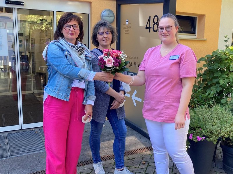 Wir sind sehr stolz auf Anna Abeln! Petra Gilberg, die stellvertretende Einrichtungsleiterin und Praxisanleiterin, Wilma Reiter, gratulieren unserer Mitarbeiterin sehr herzlich zum bestanden Examen zur Pflegefachfrau.