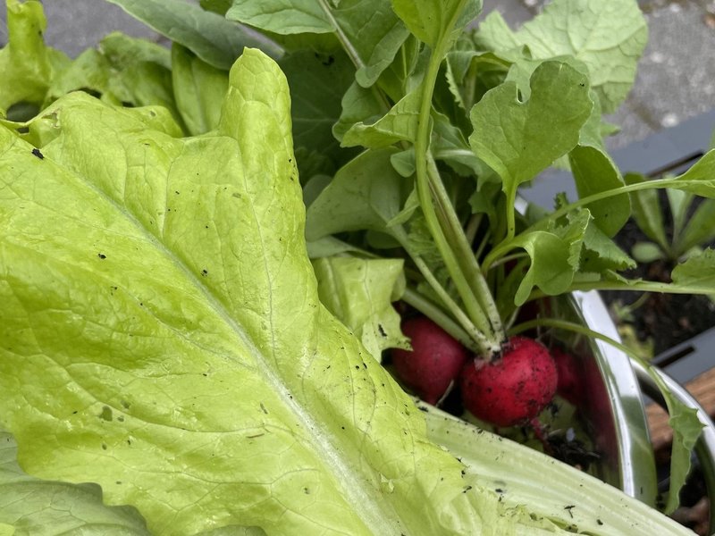 In diesem Jahr wurden im März Salat und Radieschen gesät, schön frisch und knackig.