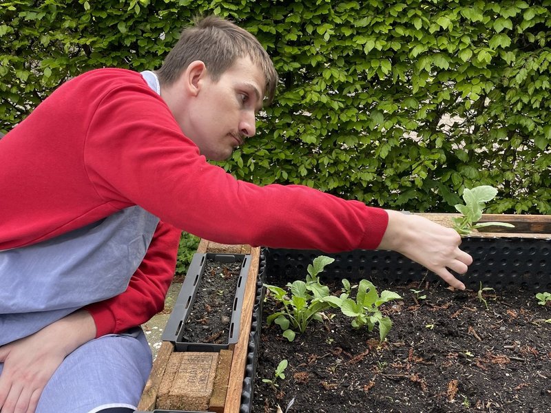 Letztes Jahr (2022) wurde in der Jungen Pflege gemeinsam ein Hoch Beet gebaut.