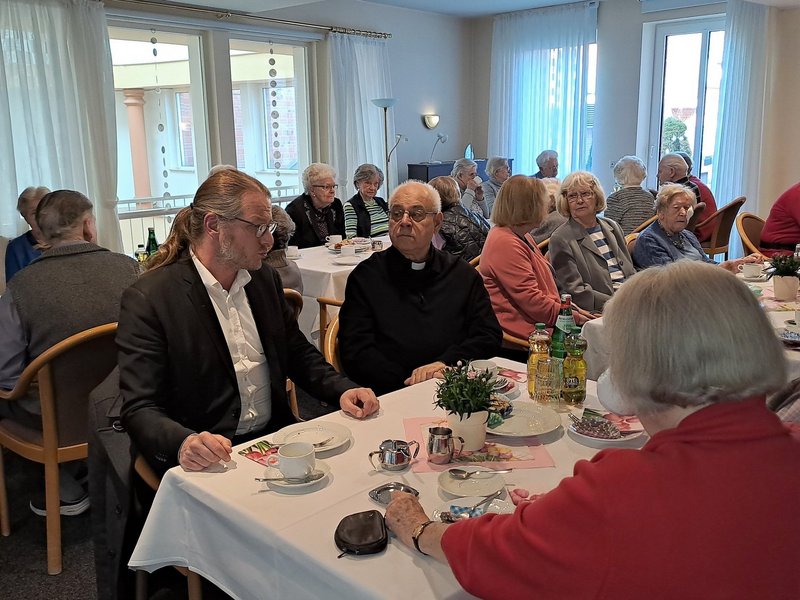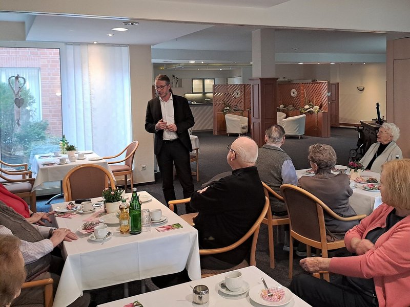 Am Mittwoch, 15. März 2023, fand das jährliche Kaffeetrinken mit dem Kevelaerer Bürgermeister Dominik Pichler statt. Er berichtet von den Neuheiten in der Stadt und anschließend können die Bewohner/-innen in netter Atmosphäre ihre Fragen an den Bürgermeister stellen.