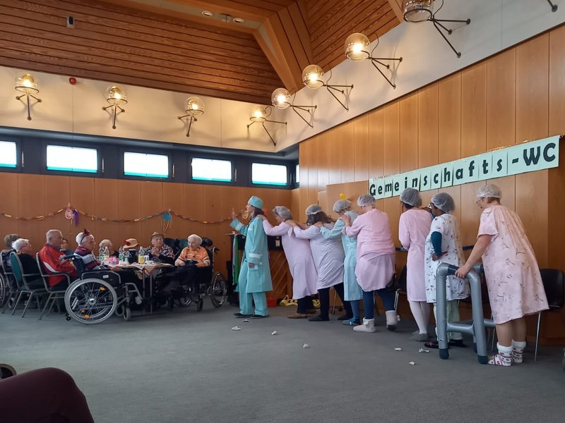 Der Soziale Dienst und unsere Küchenleitung führten einen Sketsch auf, das Kinderprinzenpaar und die Minigarde des Karnevalvereins VFR Blau-Gold traten auf Karnevalsprinz Frank der I. war mit der Prinzengarde zu Besuch Ausgelassene, feierliche Stimmung bei allen Bewohner/-innen.