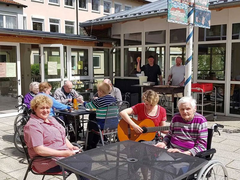 Wetterbedingt konnten wir unseren Baum nicht am 1. Mai aufstellen. Einige Wochen später holten wir unsere Feier schließlich nach. Bei leckeren Bratwürsten und einer köstlichen Maibowle genossen unsere Bewohnerinnen, Bewohner und Mitarbeitende den kurzen Sonnenschein!