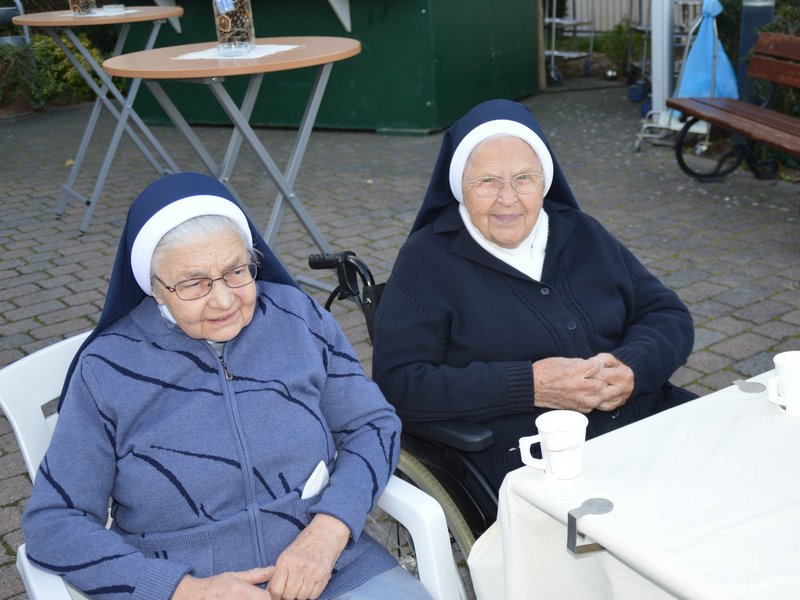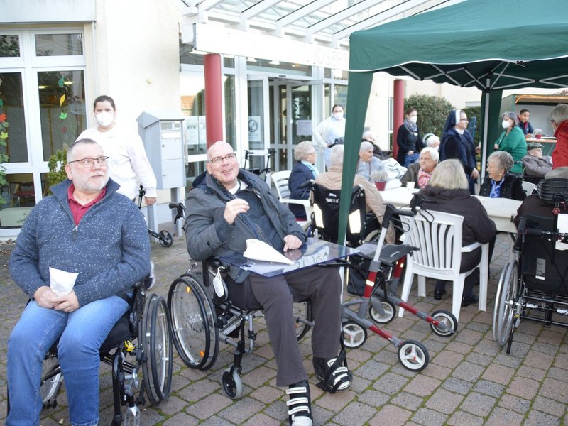 Bei wunderschönem Wetter ließ die Stimmung bei Bewohner/-innen, Nachbar/-innen, Ordensschwestern und Mitarbeiter/-innen nicht lange auf sich warten, da die Atmosphäre auf dem geschmückten Vorplatz des Hauses mit seinen Zelten die Gäste sofort in ihren Bann zog.