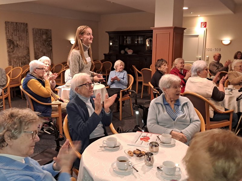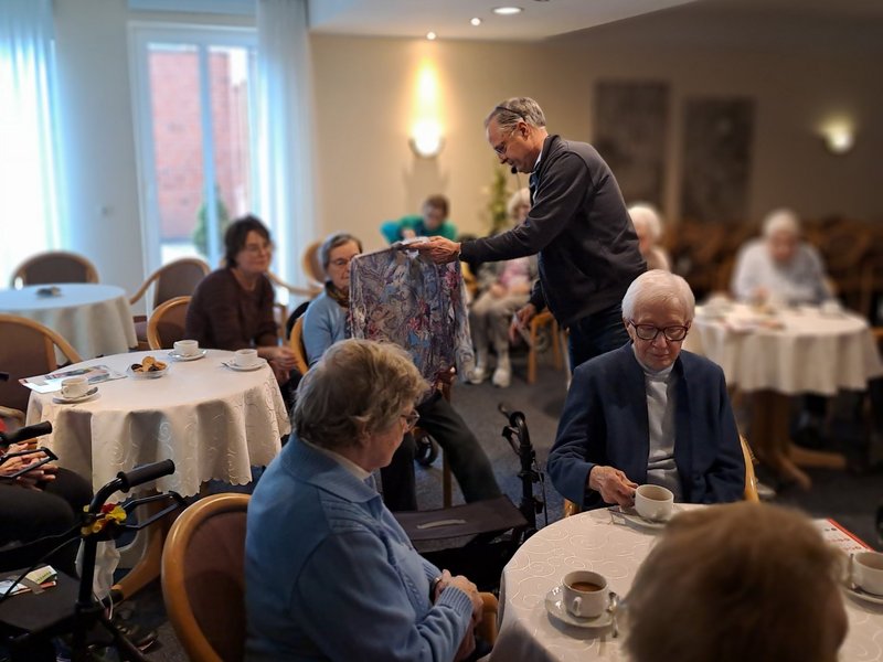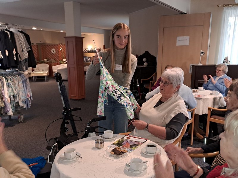 Bei Kaffee und Plätzchen bekamen die Bewohner/-innen eine Modenschau dargeboten und wurden anschließend beim Einkauf der neuen Frühjahrskollektion beraten.