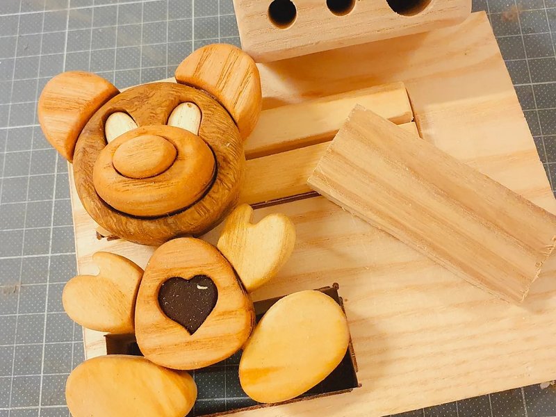 Für seinen kleinen Cousin hat er dieses Präsent entworfen und gestaltet: einen Stiftehalter in Bärenform.