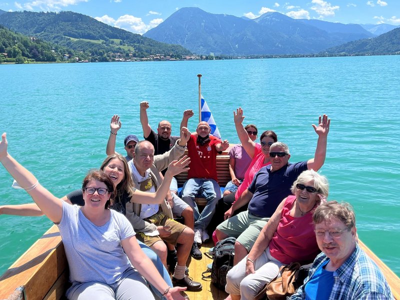 Anna Ainger, Leiterin der Arbeitstherapie, und Bezugspflegefachkraft Michaela Blüml unternahmen parallel mit 16 Bewohnerinnen und Bewohnern einen Ausflug an den Tegernsee. Die Einrichtungsleitung hat den Teilnehmenden eine Schifffahrt spendiert. Zum Abschluss gab es Eis und Erinnerungsfotos.