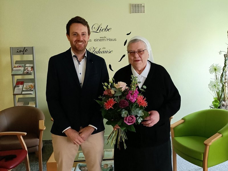 Nach sechzehn Jahren Dienst im Alten- und Pflegeheim St. Michael wurde Ordensschwester Magdalena Riedl offiziell durch Geschäftsbereichsleiter Severin Kuhn in den wohlverdienten Ruhestand verbschiedet. Herr Kuhn bedankte sich für die für die langjährige Mitarbeit und das Engagement in der Palliativen Betreuung.