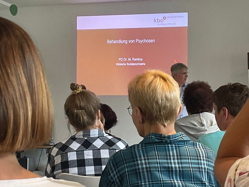 Am 25.05.2022 besuchten eine Gruppe Mitarbeiter/-innen gemeinsam mit einigen Bewohnerinnen und Bewohnern einen Vortrag über Psychosen in der Tagesstätte der Caritas in Rosenheim.