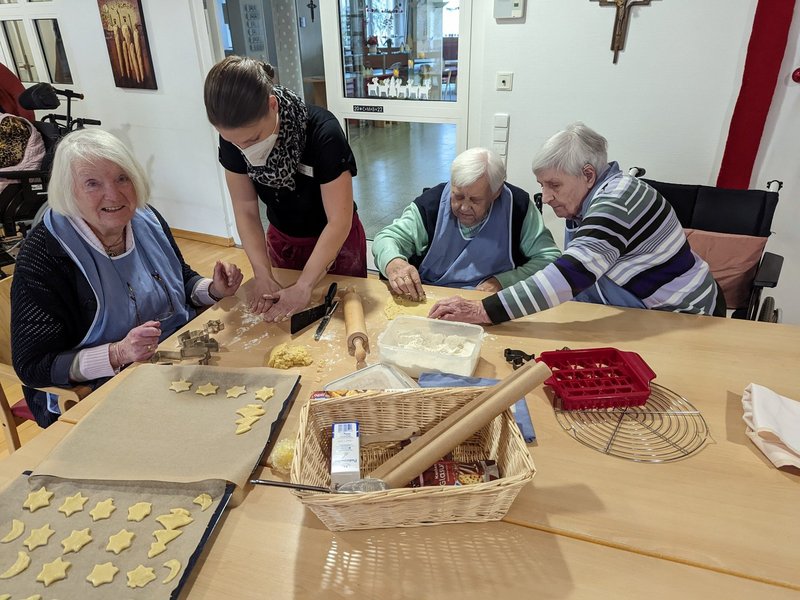 Auf allen drei Wohnbereichen wurden im St. Josefshaus Weihnachtsplätzchen gebacken. Im ganzen Haus duftete es nach Plätzchen - das passt wunderbar zu diesem schönen Winterwetter.