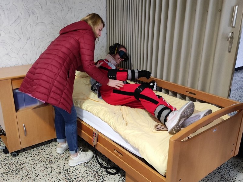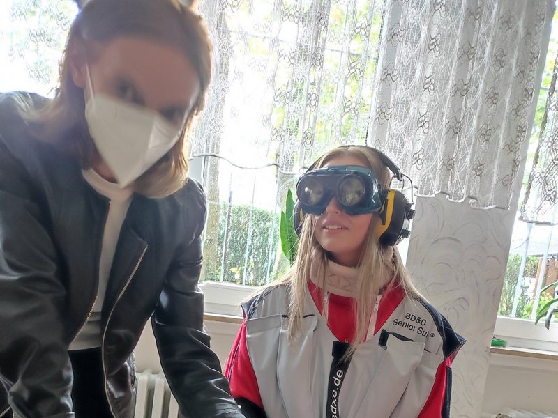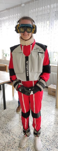 Ein weiterer Höhepunkt der Veranstaltung für unsere Azubis war es den Altersimulator zu erleben. Mit Hilfe dieses Anzugs können junge vitale Menschen erleben, was es heißt altersbedingt eingeschränkt zu sein und das mit allen Sinnen zu erfahren, was heißt eigentlich eingeschränkte Mobilität, ein begrenztes Sehfeld usw.